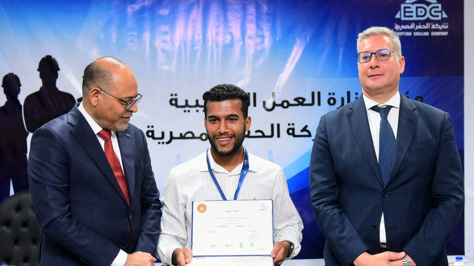 سلّم المهندس كريم بدوي وزير البترول والثروة المعدنية، والسيد/ محمد جبران وزير العمل،اليوم الثلاثاء، شهادات تدريب لأوائل الدفعة الجديدة من الخريجين الذين حصلوا على منحة مجانية من وزارة العمل ، للتدريب في مجالات الحفر و الخدمات البترولية ، داخل مركز تدريب شركة الحفر المصرية، التابع لوزارة البترول ،والذي يُقدم برامج ودورات وفقًا لأحدث المعايير الدولية،وكان في استقبالهما، رئيس مجلس إدارة الشركة المهندس أسامة كامل،وبحضور المهندس/ أحمد مصطفى، مستشار وزير العمل للتطبيقات والنظم التكنولوجية