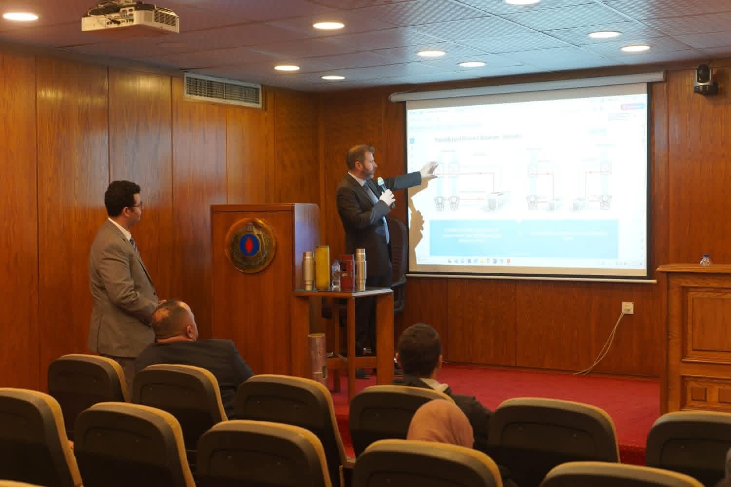 وعرض المهندس محمد إسماعيل من شركة جابكو والشركة الألمانية المنفذة لمشروع استغلال عوادم التوربينات فى رأس شقير ورأس بكر ورأس العش تجربتهم والتى تحقق وفر فى السولار وتكلفة الصيانة والعمرات وخفض الانبعاثات.